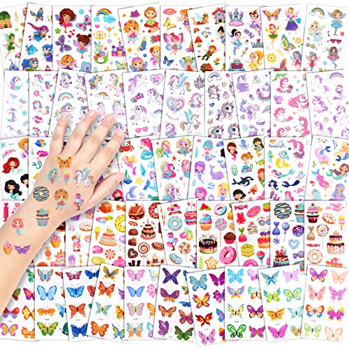 AOMIG TATUAGGI TEMPORANEI BAMBINI, 50 FOGLI ADESIVI TATUAGGI SET UNICORNO SIRENE ANIMALI PER RAGAZZE RAGAZZI, TATUAGGIO FESTE DI COMPLEANNO BAMBINI GADGET