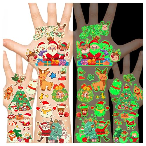 Luminosi Tatuaggi per Bambini Decorazioni Natalizie: 10 fogli di tatuaggi a forma di cartoni animati per bambine e bambini, ogni foglio misura 12 x 6,8 cm. Divertenti accessori decorativi per le feste di compleanno dei bambini. Perfetto per riempire sacchetti di caramelle o regali per i compleanni dei bambini. Sono un fantastico gadget per le feste, e possono brillare al buio per rendere la festa ancora più emozionante.,Tatuaggi adorabili e di buona qualità: i nostri tatuaggi temporanei sono realizzati con materiali ecocompatibili e stampati con inchiostro di prima qualità. Sicuramente un bel regalo promozionale o un premio. I bambini saranno felici ed emozionati quando riceveranno un tatuaggio così bello alla festa di compleanno, a Natale, in una ricorrenza speciale, ecc.,Resistenti, impermeabili e rimovibili: gli adesivi per tatuaggi luminosi durano dai 3 ai 5 giorni, a seconda della frequenza con cui si fa la doccia e della frequenza con cui si strofina il tatuaggio con acqua e sapone. Facile da applicare in 10-20 secondi con acqua e facile da rimuovere con alcol denaturato, olio per il corpo o olio doliva. Una grande sorpresa per tutti gli appassionati dei mostri dei cartoni animati,Adesivi fluorescenti: dopo aver assorbito la luce solare durante il giorno, questo tatuaggio brillerà al buio. La durata della luminosità sarà influenzata dalla luce e dalla temperatura. Se leffetto luminoso diventa fioco o addirittura inesistente, basta assorbire di nuovo la luce solare e tornerà a brillare.,Utilizzo versatile: questi nuovi tatuaggi temporanei possono essere applicati su diverse parti del corpo come viso, guance, braccia, mani, caviglie o ovunque tu voglia un tocco di glamour. Inoltre, puoi anche applicare gli adesivi per tatuaggi su altre superfici lisce e piatte come vetro e plastica, valigie, bottiglie dacqua, che sono perfette per decorare giocattoli per bambini, cancelleria e articoli per la casa, ovunque tu voglia decorare.,Regali e premi fantastici: gli adesivi sono amati dai bambini, dai neonati e dai ragazzi, perché possono divertirsi per ore a creare fantastici disegni. I tatuaggi per bambini sono adatti come articoli per feste di compleanno, bomboniere, decorazioni per feste, lavoretti, premi, giocattoli e giochi quotidiani. È un giocattolo perfetto per Pasqua, Natale, San Valentino, Halloween, il Ringraziamento e tutte le altre festività.
