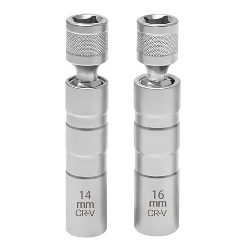 Materiale robusto e durevole: la chiave per candele da 16 mm è realizzata in acciaio 45# di alta qualità con una superficie cromata lucida, che offre elevata durezza, protezione dalla corrosione, protezione dalla ruggine e resistenza a deformazione e rottura, garantendo durata e stabilità a lungo termine.,Design ergonomico: la superficie della chiave per candele da 14 mm presenta un esclusivo design concavo e convesso che rispetta i principi dellergonomia, migliora lattrito della presa e la resistenza allo scivolamento e consente di rimuovere la candela più facilmente.,Design flessibile: il set di chiavi per candele ruota di 360 gradi, offrendo maggiore flessibilità e un comodo accesso anche alle aree più ristrette. Il set di chiavi per candele presenta un design magnetico a parete sottile con uno spessore di 1 mm per garantire una presa sicura durante linstallazione e la rimozione.,Design magnetico: il design magnetico assicura che la candela e la candeletta siano saldamente collegate durante linstallazione e la rimozione, impedendo alla candela di allentarsi durante linstallazione e la rimozione. Il diametro del cerchio a quarto di bocca è di 3/8 di pollice (10 mm) e le testine magnetiche da 16 mm e 14 mm presentano un design a 12 punti, che le rende compatibili con unampia gamma di modelli.,Elevata compatibilità: compatibile con N54, N55, N20, N26, S55, N63, B46, B48, B58, R55, R56, R57 e R60, nonché con altri veicoli. Per qualsiasi domanda sulla compatibilità, non esitate a contattarci tempestivamente. Saremo lieti di assistervi.