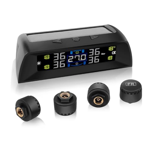 Avutrel TPMS Sistema di Monitoraggio,della Pressione degli Pneumatici, Allarme Temperatura, Auto On/off per Camper, Berlina, SUV, Monovolume, Rimorchio, 4 Sensori Esterni (72psi)