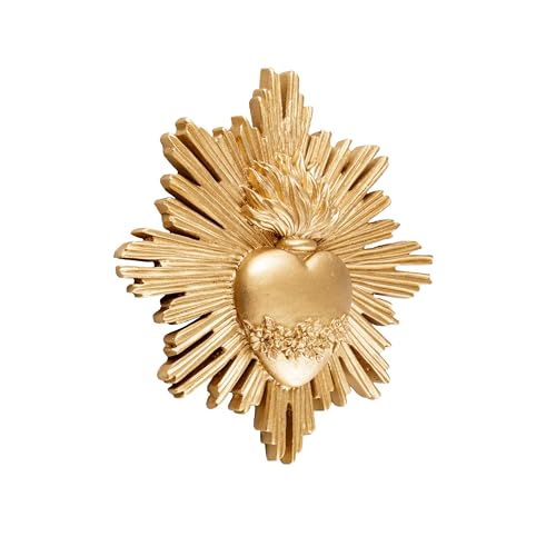Baroni Home Ex Voto con Raggi in Resina, Decorazione da Parete con Gancio, Cuore Sacro Decorativo per la Casa, Dipinto a Mano Oro 14x14x2,5 cm