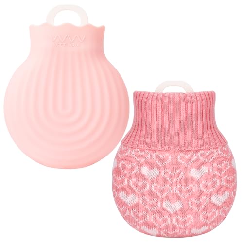 Bottiglia d'acqua calda piccola da 240 ml con custodia, mini sacchetti in silicone con manicotto rimovibile per sollievo dal calore, vita, schiena, collo, dolore alle spalle, regalo per bambini, donne