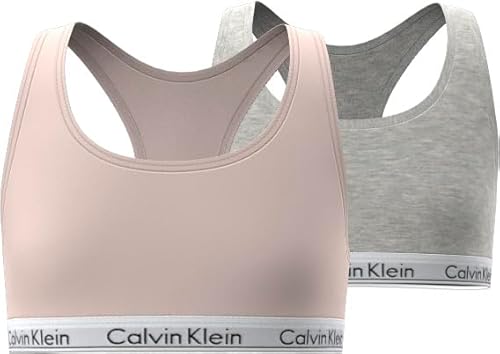 Calvin Klein Bambina Bralette Confezione da 2 con Fascia con Logo, Multicolore (Silverpeony/Greyheather), 14-16 Anni