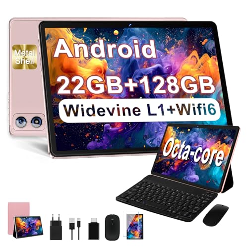 Dghrti 2025 Newest Tablet 10 pollici Android 14, 22GB RAM+128GB ROM/TF 1TB, 8-core 2.0GHz, 8000mAh, Corpo in Metallo, WiFi 5G/2.4G, BT5.0, 8+5MP, Widevine L1, Con Tastiera e Mouse, Oro
