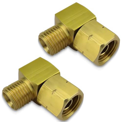 Specifiche: Due adattatori per cilindri con gomiti a 90° per connessioni con filettatura sinistra da 1/4, G1/4-19 LH FEMMINA (filettatura sinistra femmina) e G1/4-19 LH MASCHIO (filettatura sinistra maschio) per una vestibilità precisa e per soddisfare specifiche esigenze di collegamento.,Tecnologia dei materiali: realizzato in ottone di alta qualità, è lavorato con precisione, ha unelevata resistenza alla pressione e non è facile da corrodere. Le filettature sono chiare e regolari e la connessione è stretta, garantendo un circuito del gas stabile e prolungando la durata.,Installazione semplice: la forma a gomito a 90° facilita linstallazione in spazi ristretti e la filettatura sinistrorsa si adatta a specifiche apparecchiature. Non sono necessari utensili complessi, consentendo un rapido collegamento tra la bombola del gas e lapparecchiatura che utilizza il gas, migliorando lefficienza dellinstallazione.,Scenari applicabili: Ampiamente utilizzato in camper, navi, utensili pneumatici e altri scenari, crea un ponte stabile per il percorso del gas tra bombole di gas e apparecchiature, si adatta a vari requisiti di collegamento con filettatura sinistra da 1/4 di pollice ed è estremamente pratico.,Tenuta stagna: una buona struttura di tenuta previene efficacemente le perdite daria e garantisce la sicurezza del gas. Dopo rigorosi test, è in grado di mantenere una tenuta stagna stabile in diverse condizioni di lavoro, rendendo luso del gas più sicuro.