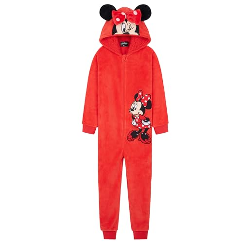 Disney Pigiama Intero Pile Bambina - Pigiama Stitch Angel Minnie Malefica 2-15 Anni - Gadget Stitch Idea Regalo Bambine (Rosso Minnie, 9-10 Anni)