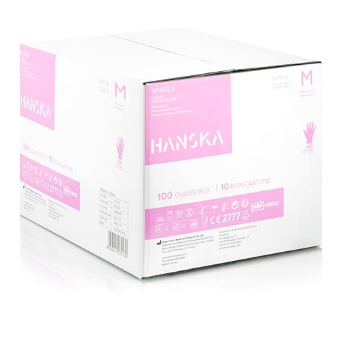 HANSKA Guanti Monouso Nitrile - Senza Polvere: Realizzati in plastica nitrilica di alta qualità, questi guanti monouso offrono resistenza e durabilità senza luso di polvere, riducendo il rischio di allergie e contaminazioni.,Usa e Getta - Ambidestri: Convenienza e igiene al primo posto, questi guanti sono progettati per essere usati una sola volta e sono ambidestri, adatti sia per la mano destra che per la sinistra, facilitando luso in ambienti di lavoro veloci.,Non Sterili - Base di Gomma: Pur non essendo sterili, offrono una protezione affidabile grazie alla loro base di gomma acrilonitrile-butadiene, ideali per compiti che non richiedono sterilità ma necessitano di protezione contro contaminazioni e sostanze nocive.,Migliore presa dei guanti: Grazie alladesione del nitrile sui palmi e sulla punta delle dita, questi guanti garantiscono una presa sicura e confortevole, essenziale per compiti delicati in ambiti medici, cosmetici e per tatuaggi temporanei.,Adatti per Ambiti Medici, Manipolazione degli Alimenti: Versatili e sicuri, questi guanti sono ideali per una vasta gamma di applicazioni, inclusi settori medici, cosmetici, manipolazione degli alimenti, garantendo protezione e igiene.