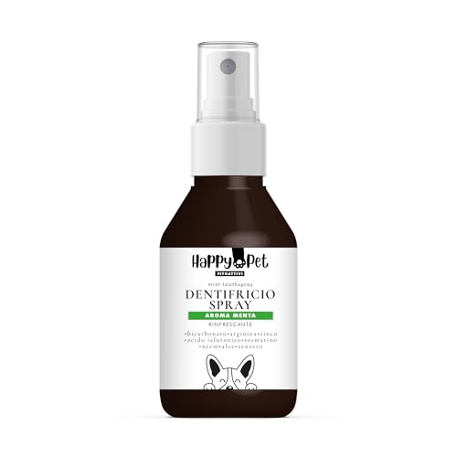 Happy Pet Dentifricio Spray per Cani 150ml – Naturale Antiplacca e Antitartaro – Alito Fresco – Senza Spazzolino – Disponibile in 3 Aromi: Neutro, Menta, Pesca (150ML, Menta)