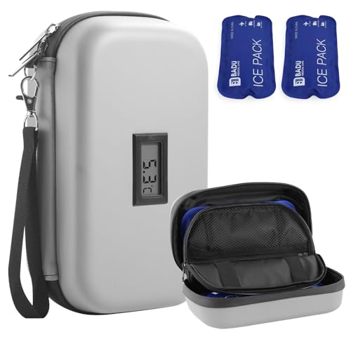 HIMDUZE Custodia da viaggio per insulina, approvata TSA, refrigeratore per medicinali da viaggio, con termometro per temperatura, custodia da viaggio per diabetici, con 2 confezioni di ghiaccio