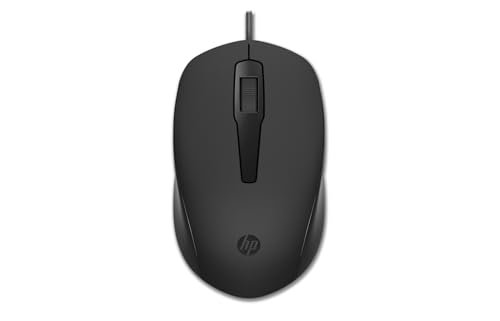 HP 150 Wired Mouse, Cablato, Collegamento USB-A, Sensore Ottico da 1600 DPI, 3 Pulsanti e Rotella di Scorrimento a Doppia Funzione, Impugnatura Egonomica e Funzionale, Nero