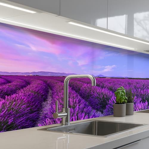 KitchenYeah© Paraschizzi Cucina Adesivo 60x200 cm Pannello Parete per Paraspruzzi Adesivi Muro Lavanda - Viola - Fiori - Natura