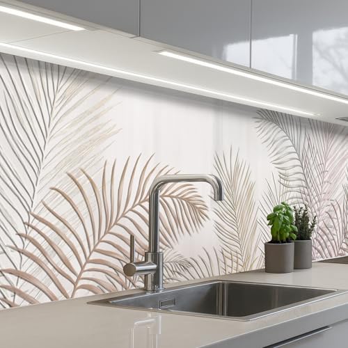 KitchenYeah© Paraschizzi Cucina Adesivo 60x300 cm Pannello Parete Paraspruzzi Pannelli Retro Foglie - Beige - Botanico - Vintage