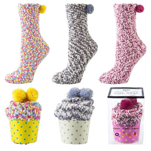 MATERIALE MORBIDO - Le nostre calze da donna sono realizzate in 93% poliestere, 5% poliuretano, 2% elastan. Sono super caldi, traspiranti, leggeri, resistenti allabrasione e assorbono il sudore. Ti fanno sentire a tuo agio tutto il giorno.,MISURA FLESSIBILE - Le nostre calze regalo cupcake sono circa 23-26 cm, una taglia adatta per la maggior parte delle taglie, dal Regno Unito 4 al Regno Unito 8, taglia UE 37-42. Sono abbastanza flessibili da adattarsi perfettamente ai tuoi piedi e possono offrire la migliore e confortevole esperienza duso per le tue attività quotidiane.,CONSERVAZIONE DEL CALORE - Il filo isolante ha uneccellente capacità respiratoria a prova dumidità e può fornire isolamento termico ad alte prestazioni e resistenza al freddo. Lelastico alla caviglia non comprime la gamba, il che può mantenere i piedi caldi e sono adatti anche per lavori di lunga durata.,ALTA QUALITÀ: il filato termico offre un isolamento ad alte prestazioni dal freddo con capacità di respirazione dellumidità superiori. Le fasce elastiche alla caviglia non comprimono le gambe regalandoti la migliore e confortevole esperienza di usura per le attività quotidiane.,SERVIZIO INTIMO - Se non sei soddisfatto delle nostre morbide calze da donna, ti preghiamo di contattarci immediatamente, faremo del nostro meglio per offrirti un servizio soddisfacente al 100%.