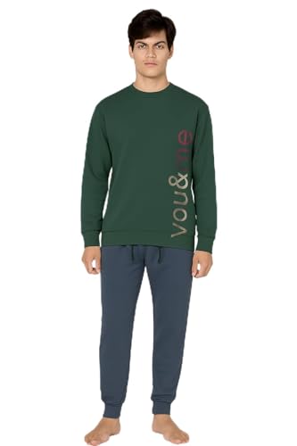 Lingerie Shop Pigiama Uomo Caldo Cotone Lungo Manica e Pantalone Lungo con Polsino Girocollo con Bottoni Maglia+Pantalone 2 Pezzi (IT, Testo, XL, Regular, Regular, Fantasia 11 696/2)