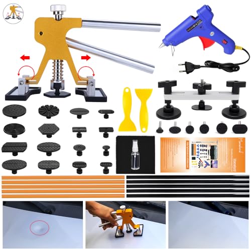 DESIGN UNICOUtilizzando il principio della leva per progettare lestrattore di ammaccature è ergonomico, il sollevatore di ammaccature dorato con unesclusiva può regolare Larghezza e altezza. puoi regolare la posizione e la distanza fisse per le tue ammaccature di diverse dimensioni, in modo efficiente e risparmiando manodopera. (Suggerimento: non adatto per pieghe o angoli ammaccati).,DESIGN UNICOUtilizzando il principio della leva per progettare lestrattore di ammaccature è ergonomico, il sollevatore di ammaccature dorato con unesclusiva può regolare Larghezza e altezza. puoi regolare la posizione e la distanza fisse per le tue ammaccature di diverse dimensioni, in modo efficiente e risparmiando manodopera. (Suggerimento: non adatto per pieghe o angoli ammaccati).,UTILIZZO AMPIOIl kit di strumenti per la rimozione di ammaccature senza vernice più completo e professionale include tirante dentatura del ponte per rimuovere le ammaccature del punto più alto. Efficiente e sicuro per rimuovere ammaccature, riparare ammaccature della porta e danni da grandine sulla superficie metallica, come auto, moto, frigorifero, lavatrice, ecc. Nessun danno alla vernice originale.,FACILE DA USAREIl nostro kit estrattore per ammaccature viene fornito con unintroduzione dettagliata dei passaggi di riparazione per il funzionamento, rende il processo di rimozione delle ammaccature così semplice. Questo kit di attrezzi per lestrazione di ammaccature per auto non è solo utile per i professionisti della riparazione di auto che utilizzano in negozio, ma è adatto anche per la riparazione di ammaccature senza vernice fai da te.,SUPPORTO TECNICOIn caso di problemi con larticolo, contatta il nostro servizio clienti Amazon Prime e faremo del nostro meglio per aiutarti a risolvere i tuoi problemi.