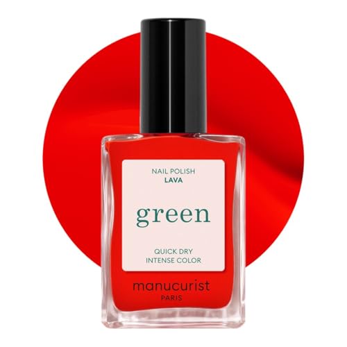 Manucurist - Green Smalto Unghie Lava - Rosso - Smalto classico 9-Free - Smalto per Unghie Vegano e di Origine Biologica (80%) - Manicure Professionale - 15ml