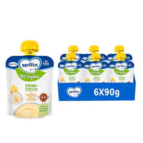 Merenda 100% vegetale con drink di cocco, banana, mela e ananas,Senza zuccheri aggiunti,Indicato a partire dal 6° mese compiuto, allinterno di unalimentazione varia, sentendo il parere del Pediatra