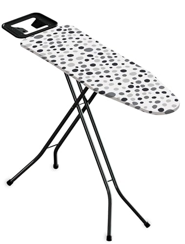 MENKËLL - Asse da stiro 33x110 cm - In acciaio con leva pieghevole, salvaspazio con Poggiaferro integrato, piedi antiscivolo, regolabile (Pois ASS-144)
