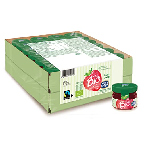Menz&Gasser Confettura Extra Bio di Fragole Monodose Biologica, con Frutta, 100% Made in Italy, 24 Vasetti x 28 g