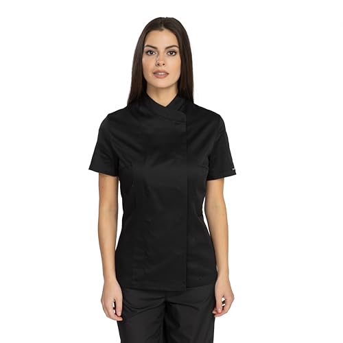 MISTO COTONE: La nostra giacca cuoco donna NORI ha la miscela perfetta di 65% poliestere e 35% cotone che le rende super morbide e traspiranti anche in ambienti caldi. La zona della schiena e delle ascelle è realizzata al 100% in poliestere, rete traspirante che dona elasticità, libertà di movimento e comfort eccezionale.,DESIGN E FUNZIONALITÀ: la classica chiusura a doppio con bottoni automatici rende facile indossare e togliere giacca cuoco donna. Le maniche corte, la tasca interna e il bellissimo e pratico design della tasca sulla manica sinistra che può essere utilizzato per riporre piccoli oggetti come penne e termometri.,COLLO CONFORTEVOLE: il colletto rialzato traspirante della giacca cuoco donna mantiene una certa lunghezza per evitare prurito, restrizione e movimenti irrequieti durante il lavoro in cucina. Abbiamo progettato queste giacche per proteggere costantemente il tuo corpo e promettere una solida esperienza in cucina.,FACILE DA LAVARE: le giacche cuoco donna PALLTEX sono realizzate in tessuto traspirante e traspirante che controlla il calore, mantiene il flusso daria, mantiene la temperatura interna e mantiene la giacca comoda. Non si restringe mai e mantiene le tue giacche da lavoro facili da lavare.,SCELTA PROFESSIONALE: le giacche cuoco donna PALLTEX sono realizzate con un mix di qualità di tessuti che offrono il massimo comfort pur rimanendo senza pieghe in ambienti caldi. Questa è una giacca cuoco donna perfetta per completare luniforme da chef, ideale per qualsiasi ambiente di lavoro professionale - Tutto stile e funzionale per te!