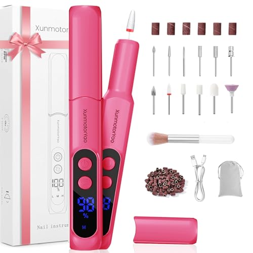 XunmotorYao Fresa per Unghie Professionale Intelligente Led Portatile Manicure e Pedicure Elettrico Unghie Portatile Fresa Trapano Chiodo per Casa e Salone Set,Rosso rosa