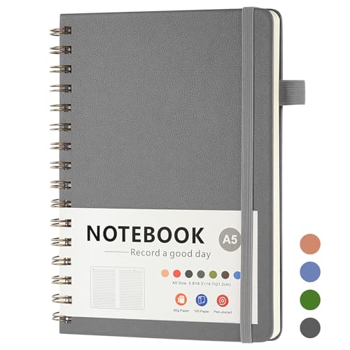 OSDUE APPUNTI A SPIRALE, TACCUINO AA5 CON CHIUSURA A ELASTICO,100 FOGLI/200 PAGINE,21.5 X 15.6CM,COPERTINA RIGIDA IN PVC,CON PORTAPENNE, TASCHE ESPANDIBILI, ELASTICI,PER DONNA UOMO