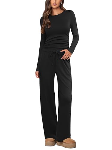EKOUAER PIGIAMA DONNA VESTITO DONNA INVERNALE MANICHE LUNGHE ADERENTE CASUAL CHIC TUTA COMPLETA CON CORDINO, NERO L