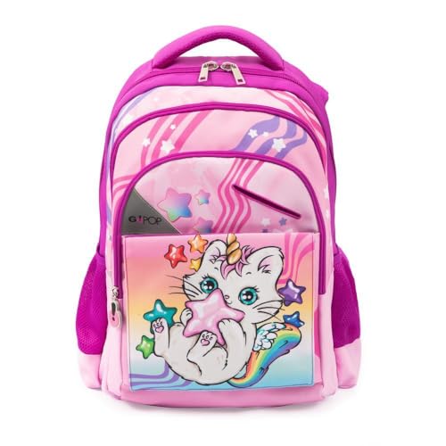 GO POP - ZAINO MODELLO MEOWCORN, 3 SCOMPARTI,TASCHE INTERNE E LATERALI PORTA BORRACCIA, SCHIENALE E SPALLACCI IMBOTTITI, CON FASCIA PERSONALIZZATA E POP UP, LT 24, DIM 32X44X19, SCUOLA ELEMENTARE