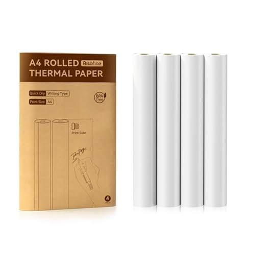 BISOFICE 4 ROTOLI CARTA TERMICA A4, COMPATIBILE CON TUTTE LE STAMPANTE TERMICA PORTATILE, SENZA BPA, PER FOTO RICEVUTE MEMO FILE, CIRCA 22 FOGLI/ROTOLO