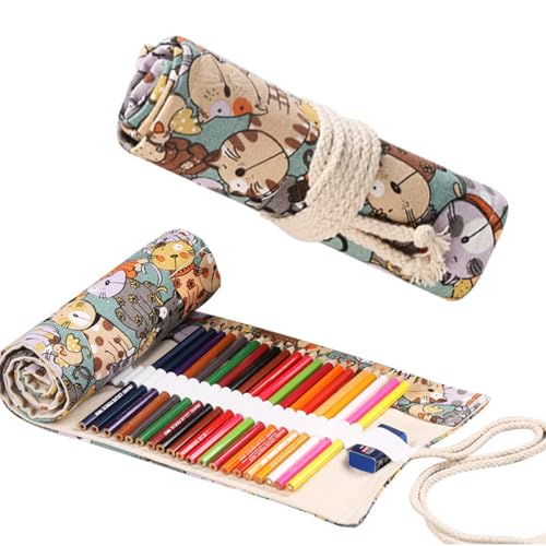 YAZWUR 1 PEZZO ASTUCCIO ARROTOLABILE, 48 FORI CANVAS PENCIL BAG, PORTAMATITE PER ARTISTI, ASTUCCIO PORTA MATITE E COLORI PER SCRIVERE E DISEGNARE