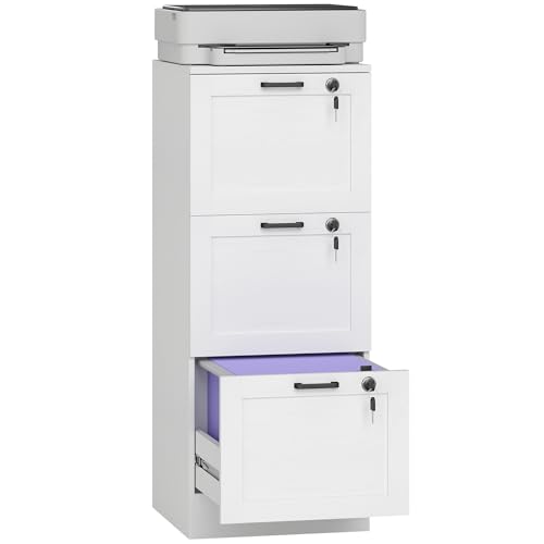 HOMCOM SCHEDARIO DA UFFICIO CON 3 CASSETTI CON SERRATURE E SPAZIO PER STAMPANTE, CASSETTIERA SCRIVANIA PER LETTERA/FORMATO A4, CASSETTIERA UFFICIO PER STUDIO SOTTO SCRIVANIA, 40X40X101 CM, BIANCO