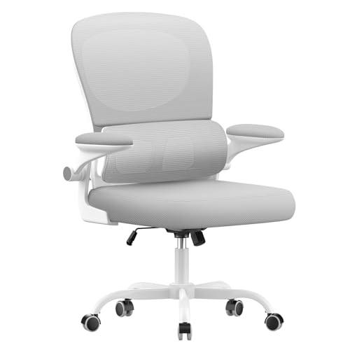 NASPALURO SEDIA DA UFFICIO,SEDIA SCRIVANIA CON SUPPORTO LOMBARE ADATTATIVO A FORMA DI C, REGOLABILE IN ALTEZZA, BRACCIOLI RIBALTABILI, POLTRONE UFFICIO A RETE TRASPIRANTE PER SCRIVANIA, CASA,GRIGIO