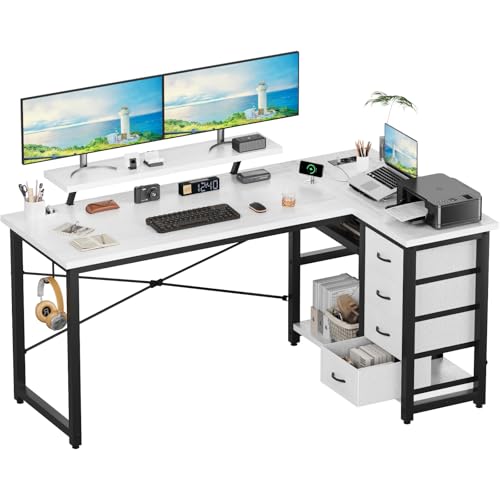 DEVOKO SCRIVANIA ANGOLARE 160X80 CM, TAVOLO A L REVERSIBILE CON 4 CASSETTI SPAZIOSI, USB/TYPE-C + 2 PRESE DI CORRENTE, SUPPORTO STABILE PER MONITOR, LAVORO DA CASA, BIANCO