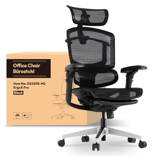 FLEXISPOT ERGOX PRO SEDIA DA UFFICIO ERGONOMICA CON POGGIAPIEDI, ALTEZZA REGOLABILE A 12 LIVELLI, BRACCIOLI 7D, SUPPORTO LOMBARE 5D, POGGIATESTA 4D, PORTATA 250 KG E SEDUTA IN RETE TRASPIRANTE – NERO