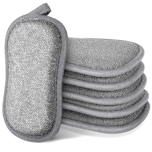 APXEL SPUGNA PIATTI BIFACCIALE DUREVOLE, 6 PEZZI SPUGNE CUCINA, SPUGNETTE, SPUGNE MICROFIBRA RIUTILIZZABILI, PER POSATE, CUCINA, BAGNO, PAVIMENTI(GRIGIO CHIARO)
