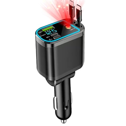 CARICATORE AUTO RETRATTILE 4 IN 1, 83W ACCENDISIGARI USB DOPPIO CAVI E LED CIELO STELLATO CARICATORE DA AUTO CON IPHONE, GOOGLE PIXEL, SAMSUNG GALAXY (NERO)
